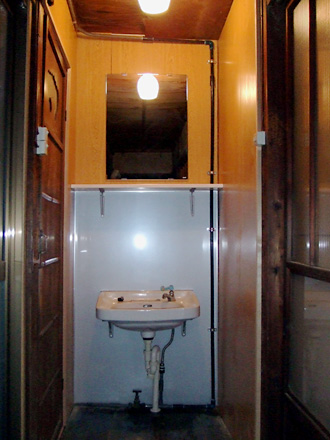簡単にでいいのできれいにして欲しいということで壁にプリント合板を貼り、洗面部分の壁は耐水に優れたキッチンパネルを貼り、鏡と棚を取付けました。